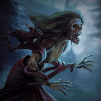 silhouettes of trees and what appears to be moonlight, adding to the horror-themed atmosphere. The style suggests this could be related to a horror or fantasy genre, possibly from