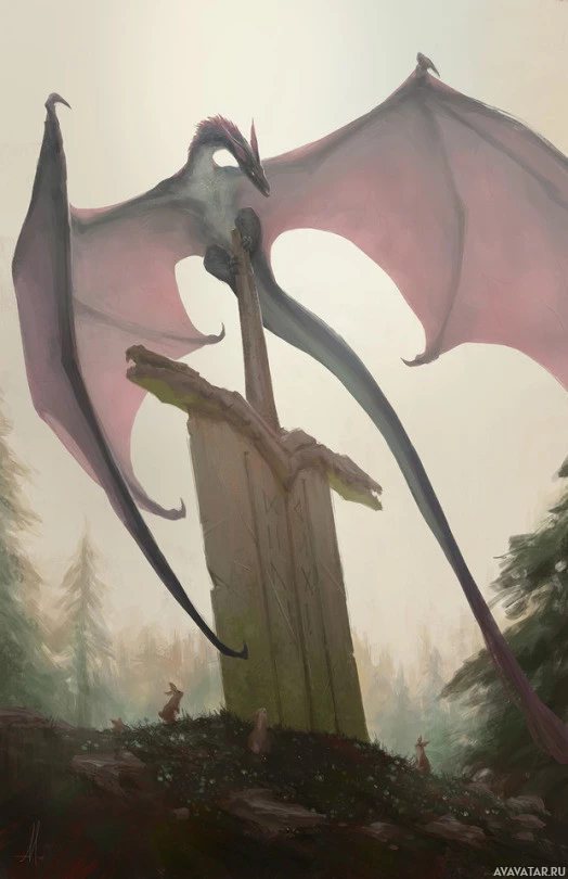 fantasy art, likely intended to evoke a feeling of mythical creatures inhabiting a magical world.