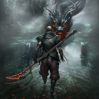 In the image, there is a person wielding a sword and standing in front of a large dragon. The setting appears to be a forest or jungle with misty surroundings. The atmosphere suggests a scene from a fantasy narrative where the character might be confronted with a dangerous creature like the dragon.