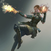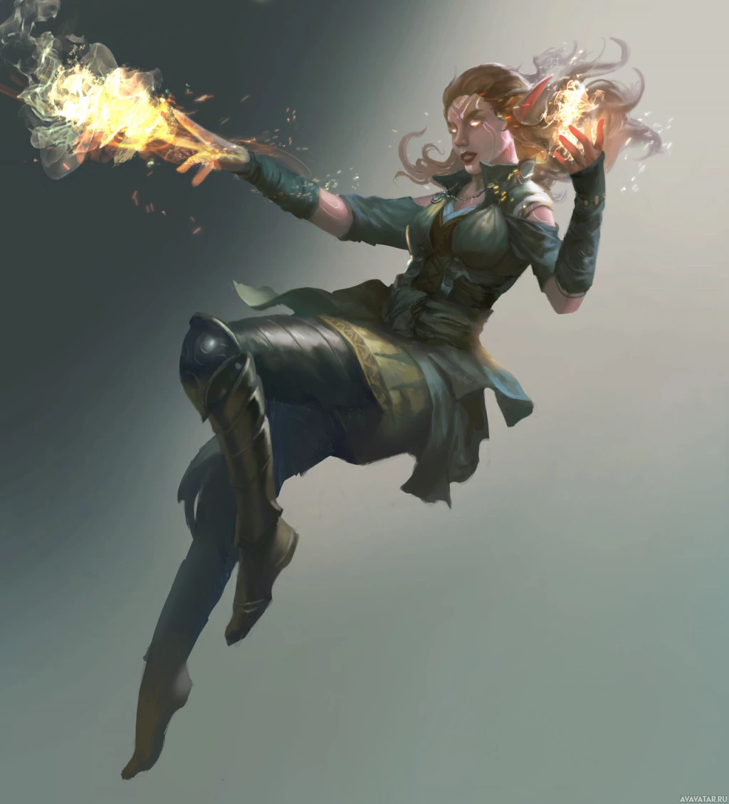 magical energy. The character is captured mid-motion, as if she's casting a spell or preparing to attack.