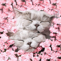 closed eyes. The overall composition suggests a peaceful and adorable scene with