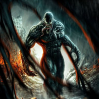The image features a character that resembles Venom, a fictional antihero appearing in American