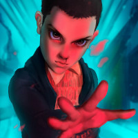 Stranger Things." This is an illustration rather than a photograph. The character depicted has a determined expression, with one hand extended out as if reaching for something or someone. The art style is reminiscent of digital illustrations commonly found in modern entertainment media such as