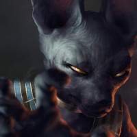 fantasy genres or artwork designed to evoke a sense of mythology or mystery. The character has cat-like ears and is wearing what looks like ancient Egyptian attire, suggesting a theme of history, mysticism, or