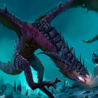 This is an image of a fantasy dragon character. The dragon has a purple-ish hue and is depicted in a dynamic pose, suggesting movement or action. It's set against a backdrop that appears to be an icy landscape or a frozen tundra, which complements the fantastical theme of the image.