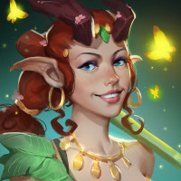 hints of greenery, possibly indicating a connection to nature or magic. This character is known for being one of