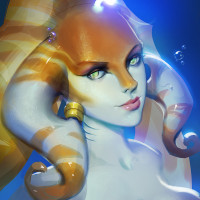 an underwater environment or a magical space, which fits her aquatic nature in the game.