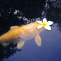 In the image, there is a large koi
