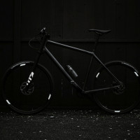 a modern bicycle with drop handlebars, which suggests that it could be designed for both road and mountain biking. It has disc brakes, a common feature in contemporary bicycles to provide better stopping power, especially on