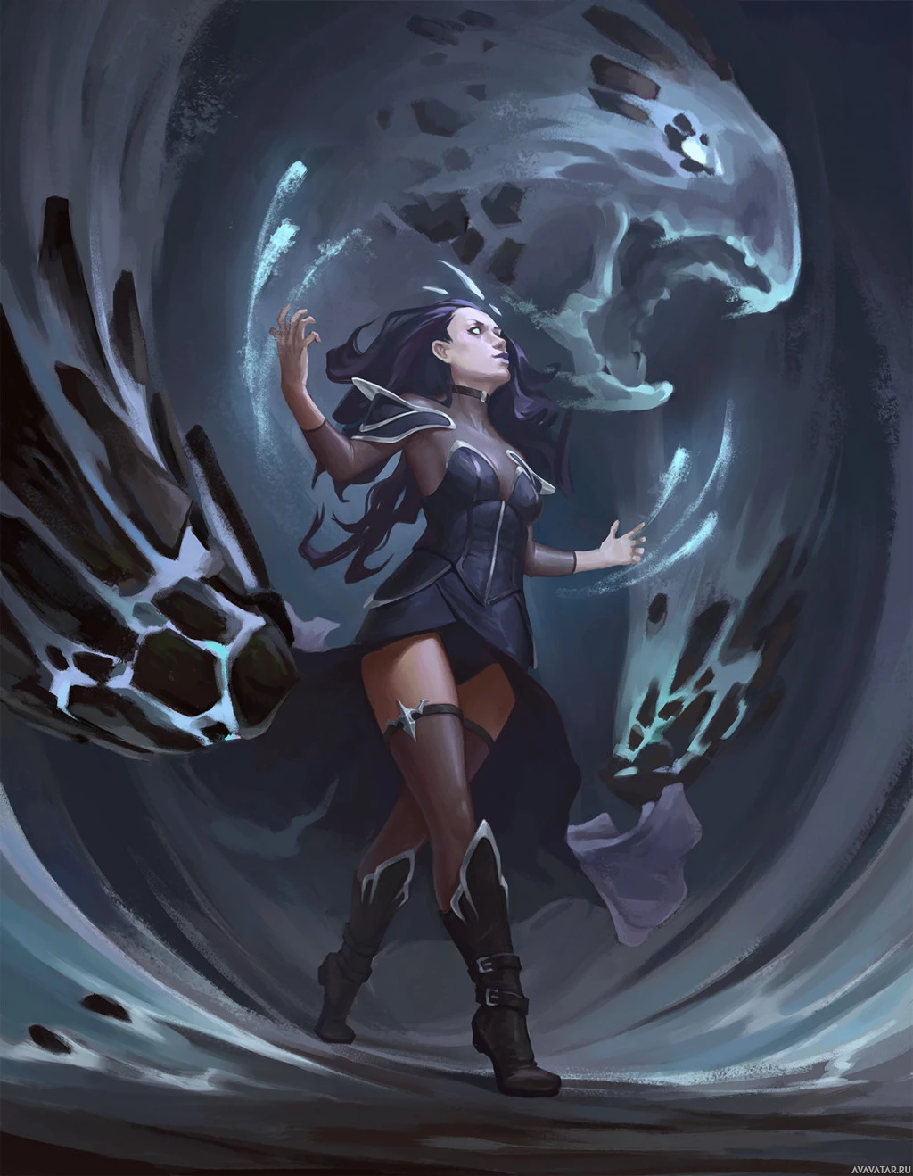 a female character. She appears to be in the midst of casting or controlling some sort of