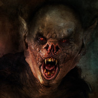 The image features a character that appears to be a horror-inspired representation of a vampire. The figure is shown with exaggerated, monstrous features such as sharp teeth,