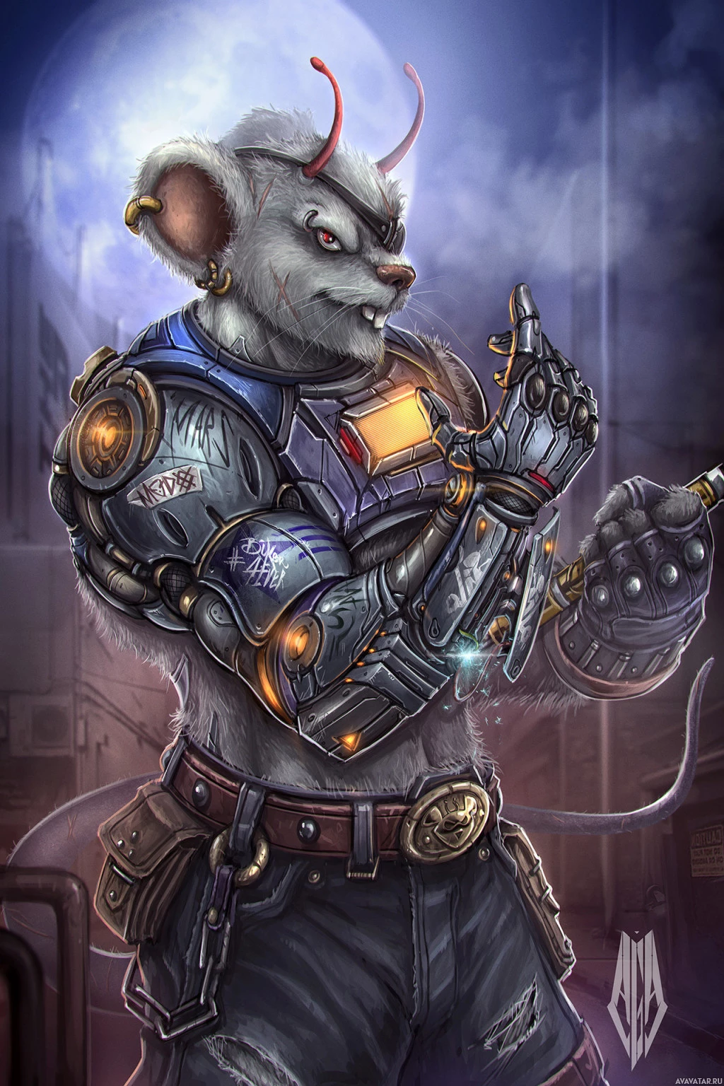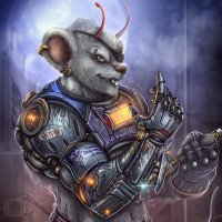 an illustrated character that appears to be a hybrid between a mouse and a humanoid figure. This creature has the body of