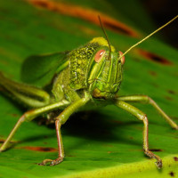 На снимке изображен кузнечик. Кузнечики — насекомые, известные своими характерными большими задними лапами, которые они используют для прыжков на высоких скоростях. Они имеют длинные усики и часто встречаются в травянистых областях, отсюда и их название.