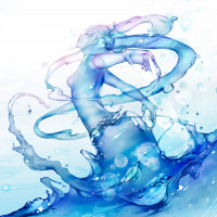 a dynamic pose that suggests movement or dance, with her arms spread out as if she is embracing the flow of the water around her. Her hair and clothing blend seamlessly into the water's motion, indicating either a transformation or