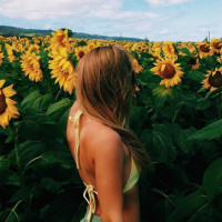 yellow flowers that resemble sunflowers, suggesting it could be a crop or a garden of these plants. The sky is clear with some clouds scattered across, indicating good