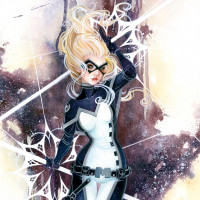 a female character dressed as Mockingbird, which is a superhero persona associated with the Marvel Comics universe. She is shown in
