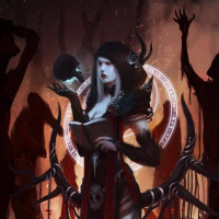 a symbol of power or enchantment. The overall tone of the image suggests a narrative related to magic, mysticism, and perhaps the macabre.