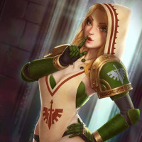 a sense of intrigue or mystery to her appearance. The character is drawn in a way that combines realistic features with fantasy elements, common in many contemporary