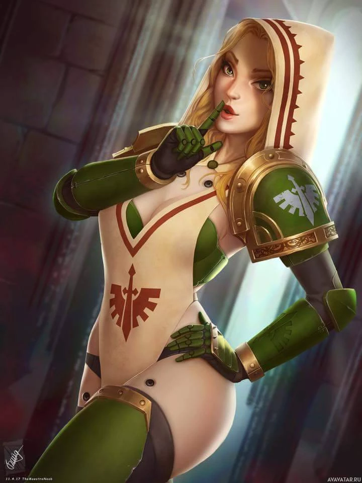 Elder Scrolls." Her pose, with one hand near her mouth as if whispering, adds
