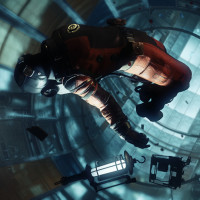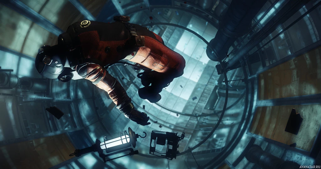 typical attire for an astronaut in such settings. This could be a scene from the game "Dishonored 2," known for its intricate