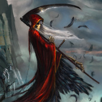 a Grim Reaper or Death, given the association with skulls and a scythe. This character is typically seen as