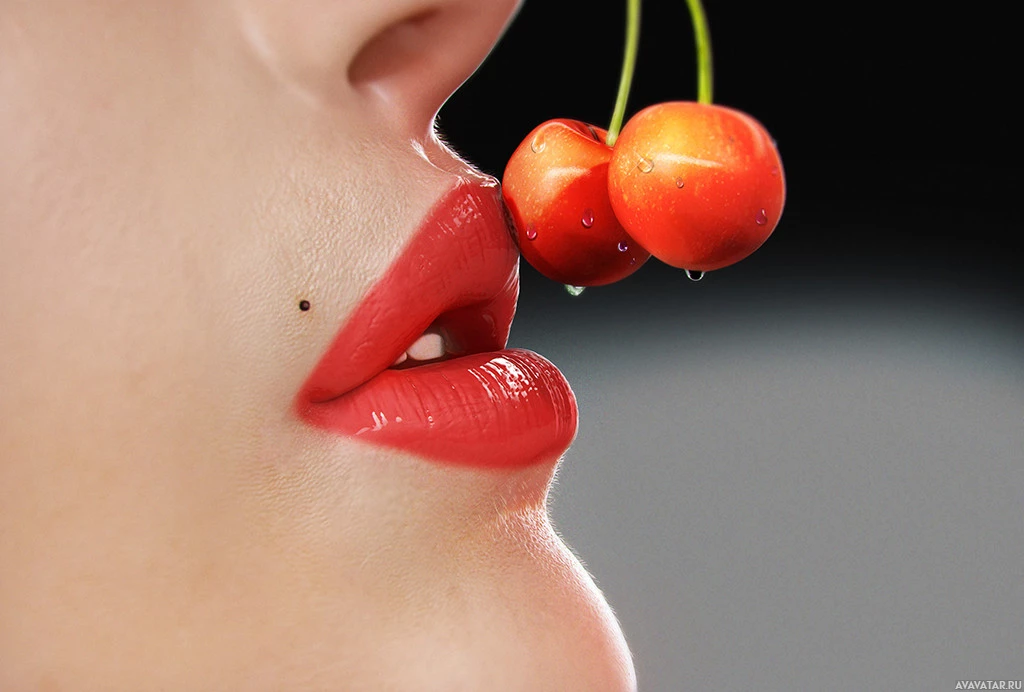 The picture shows a close-up of a woman's lips, wearing