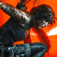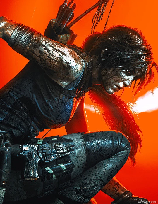 red hue, which suggests it could be set in a jungle or a volcanic area, common environments for the game. Lara Croft is known for her adventures and explorations in dangerous settings.