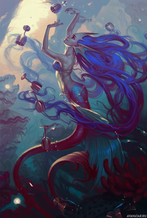 The image depicts a fantasy-themed illustration of a mermaid. The character has