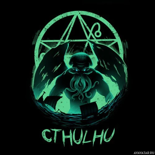 The image features a stylized graphic that appears to be related to the "Cthulhu" genre, which is often associated with fantasy and horror themes. Central to the image is a figure that resembles Cthulhu,