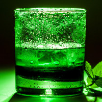 a green liquid, which could be a drink. It has