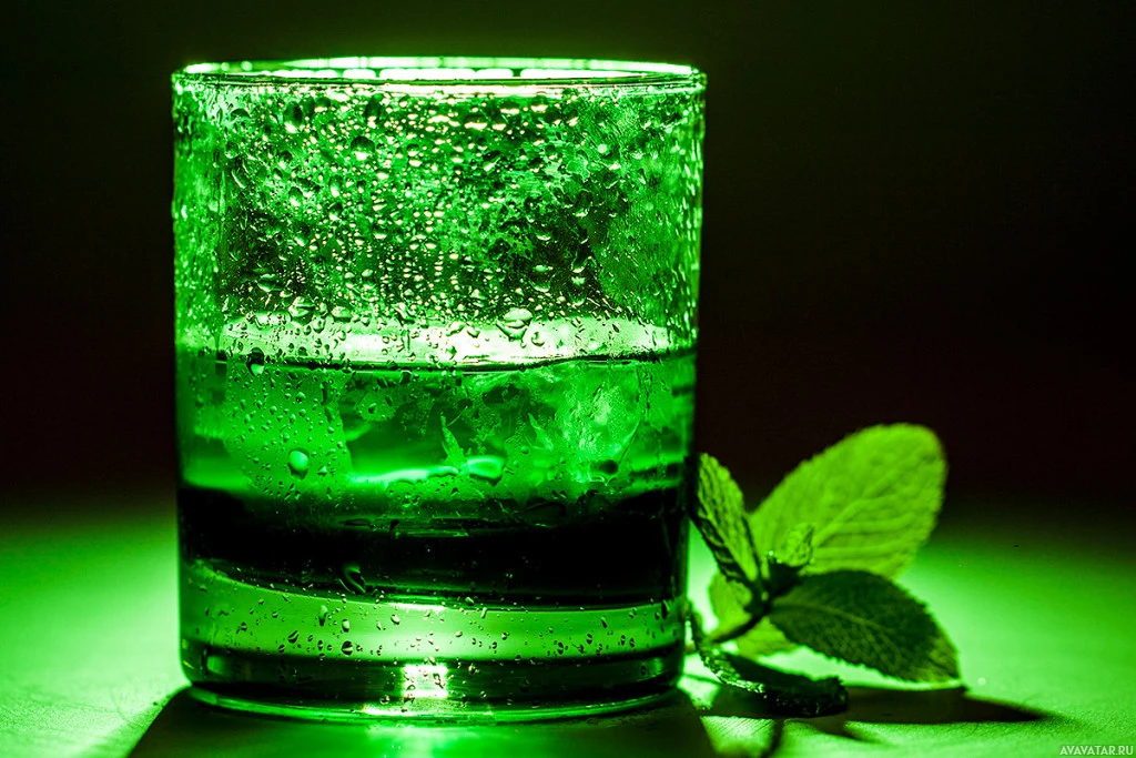 the green color, creating an unusual yet intriguing appearance for a commonplace item like a cocktail or mocktail. The