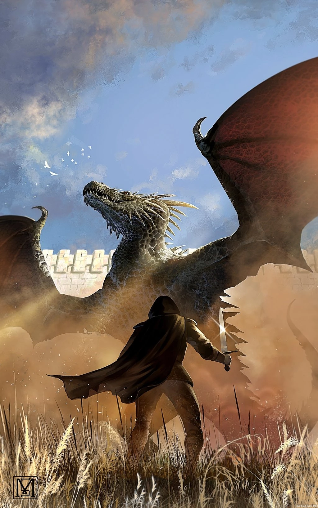 kind of scene is typical in fantasy-themed artwork and stories where dragons are often depicted as powerful and sometimes dangerous creatures.