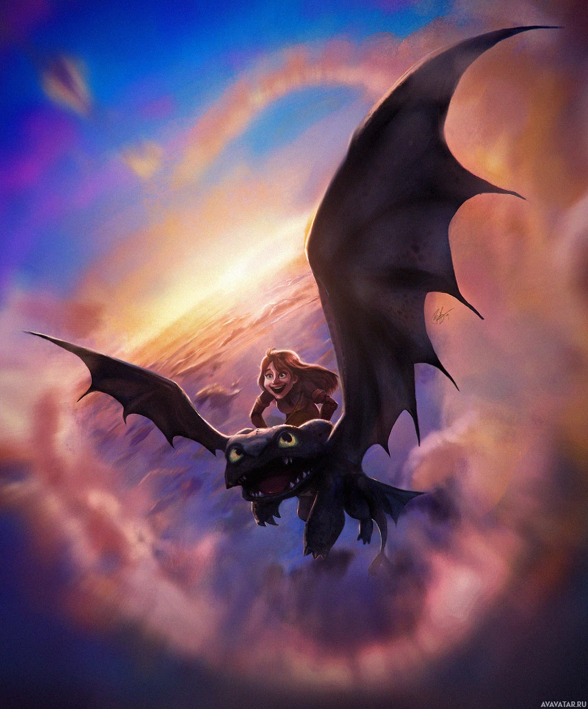 an animated scene from the movie "How to Train Your Dragon." There is a girl, presumably