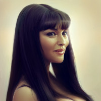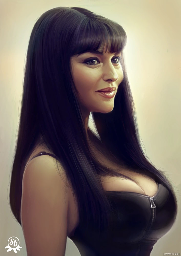 a black outfit or dress, which might suggest a formal or business setting. The art style seems to be focused on realism with attention to detail in her attire and features.