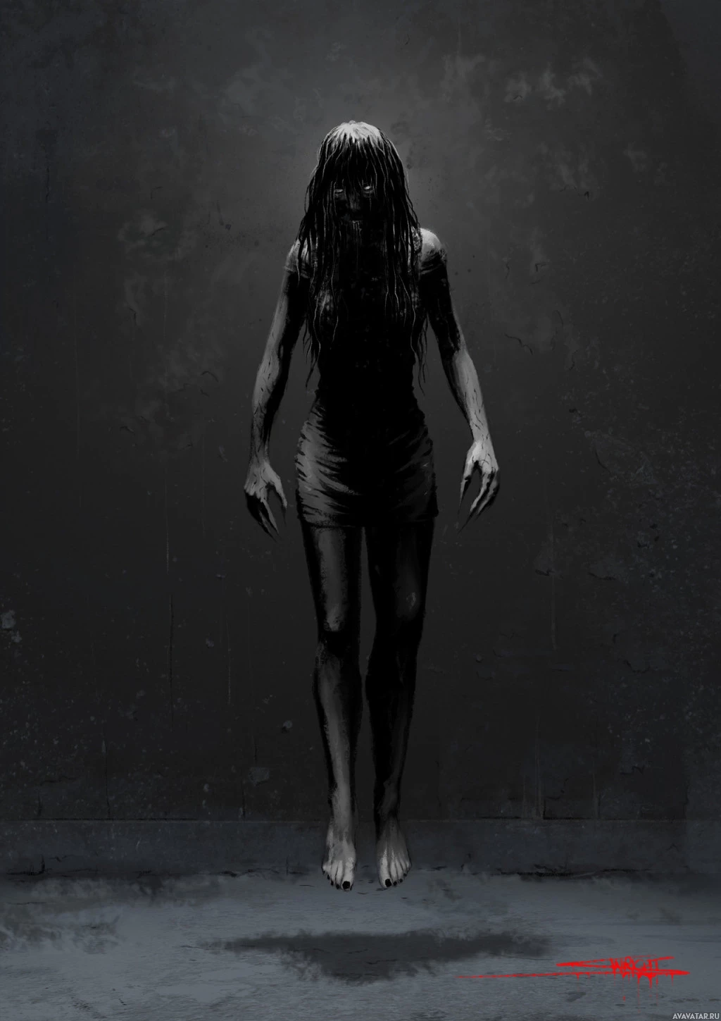 This is an image of a figure that appears to be a representation of horror. The figure has long,