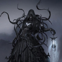 hooded figure. The character is dressed in black with flowing robes and has dark, ghostly features such as
