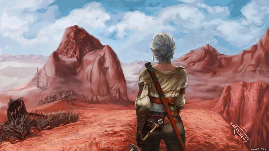 The image is a digital artwork of a character known as Ciri from