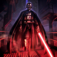 The image features a character that is recognizably Darth Vader, a well-known villain from the "