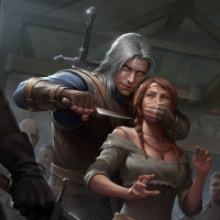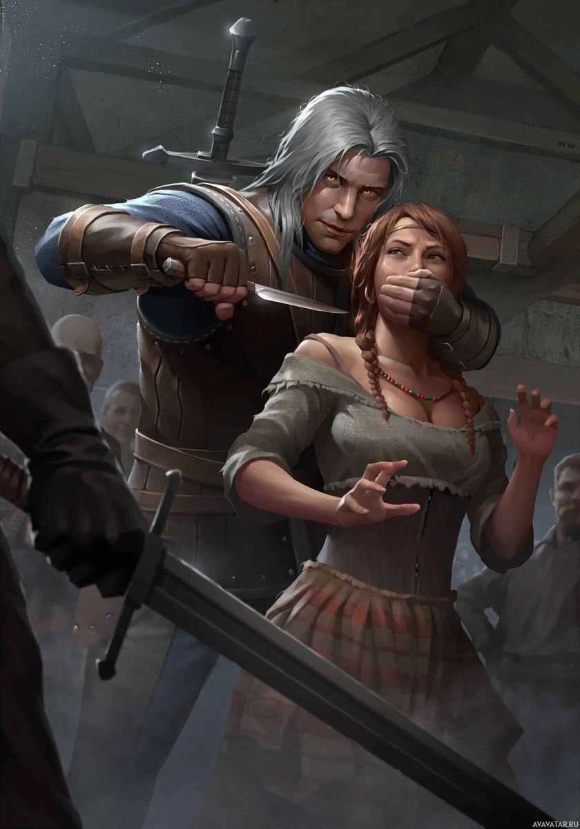 The image depicts a scene from the game "The Witcher 3: