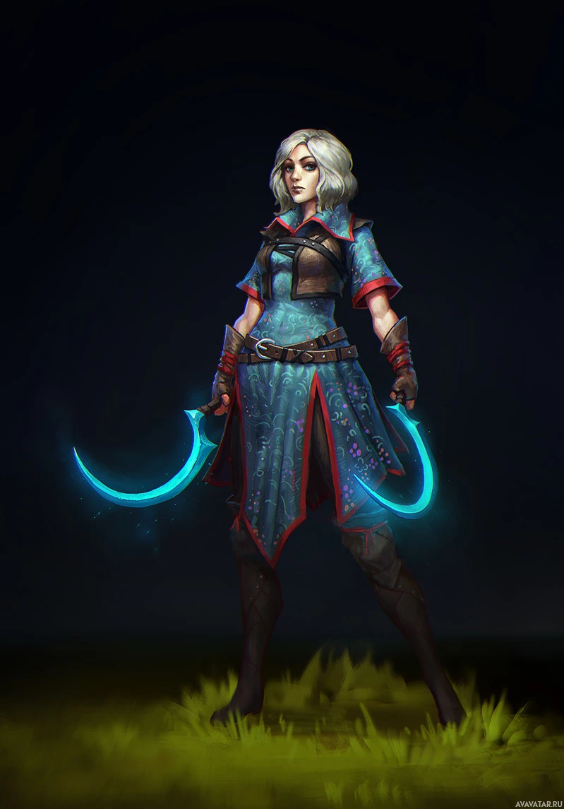 a female character that appears to be from a fantasy setting. She has long