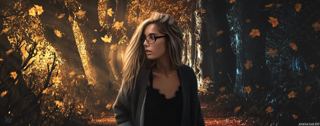 fallen leaves and possibly some misty or reflective surfaces, adding to the moody atmosphere of the photograph.