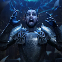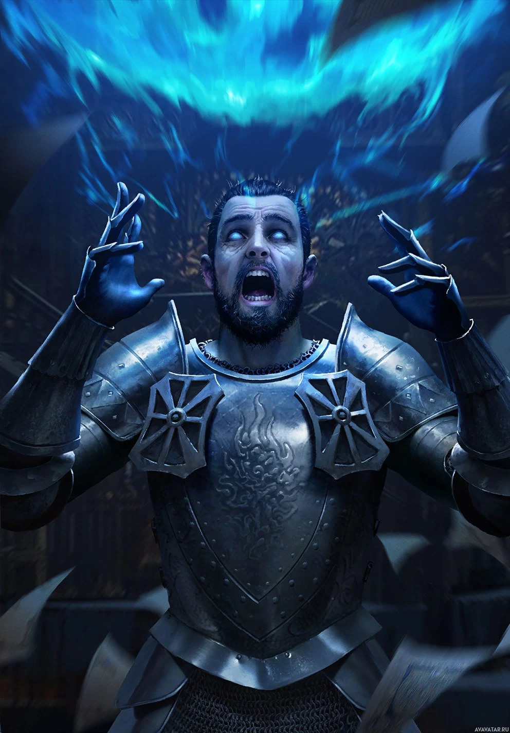 a fantasy setting. The character is shown with his mouth open in a surprised or intense expression, and there appears to be some sort of magical energy surrounding him or emanating from him, which suggests that he might have some sort of