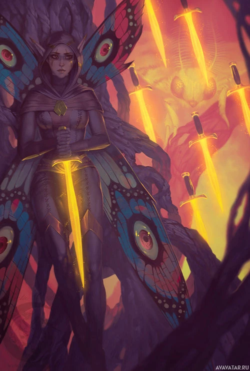The image depicts a fantasy-themed illustration featuring a character that combines elements of both human and fairy. This character is adorned with butterfly wings, suggesting the qualities of a fairy or