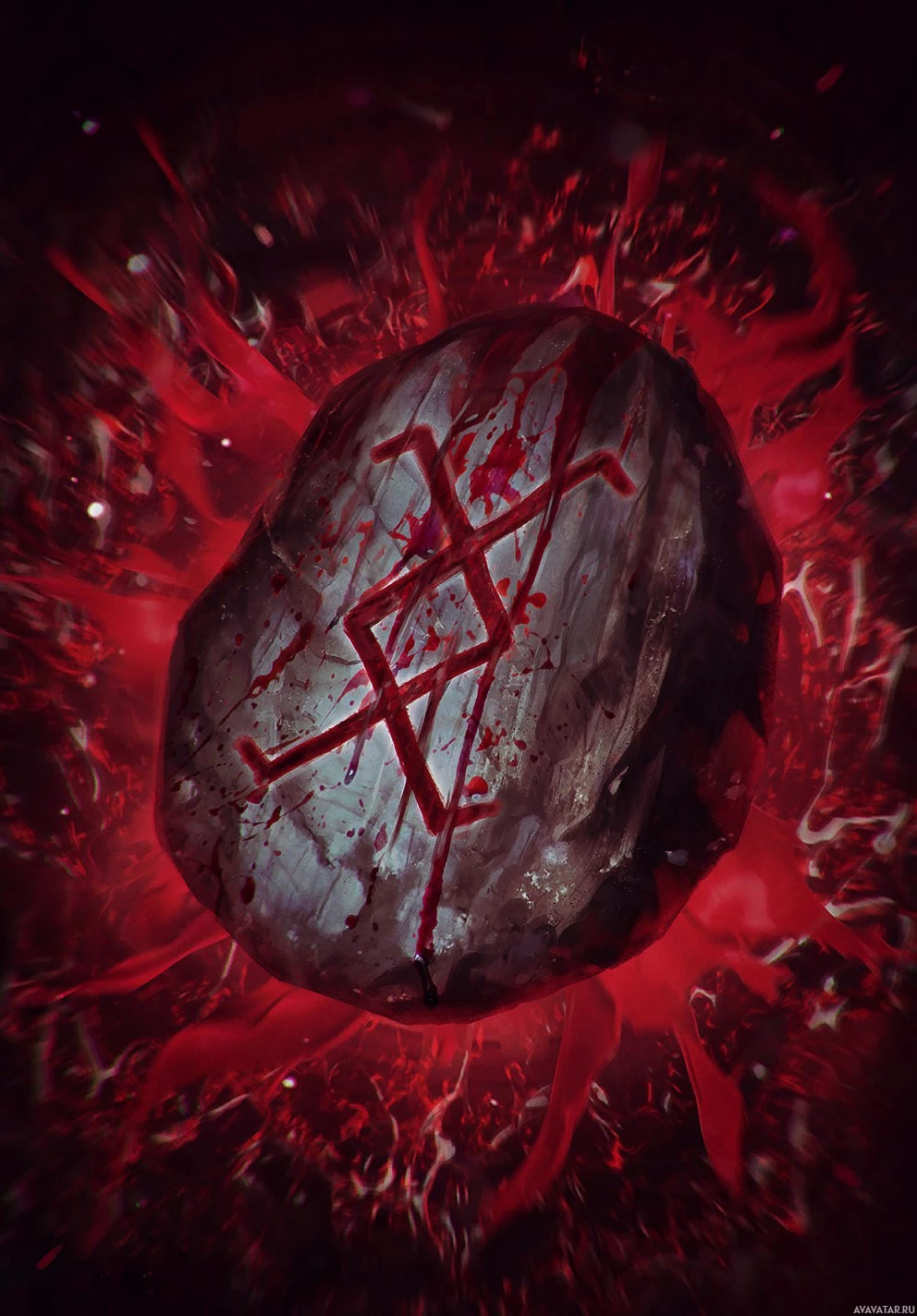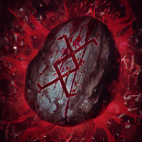 game series. At the center, there is a large, rough stone with a red rune or emblem on it, which is characteristic of the series'