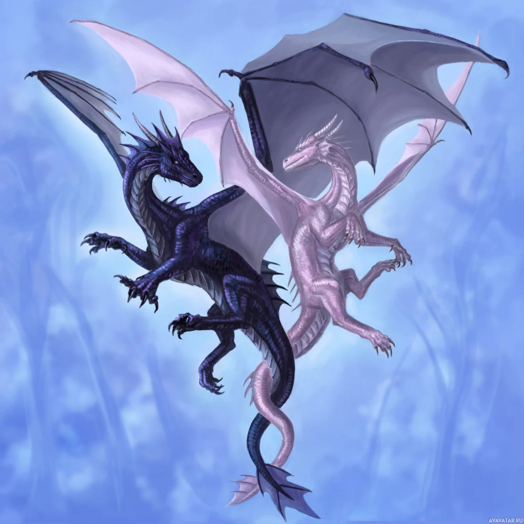 mythical creatures commonly found in fantasy literature and media. Their colors vary; one is darker, while the other is lighter, which could suggest