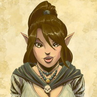a drawing of an elf. She has pointed ears, which is characteristic of