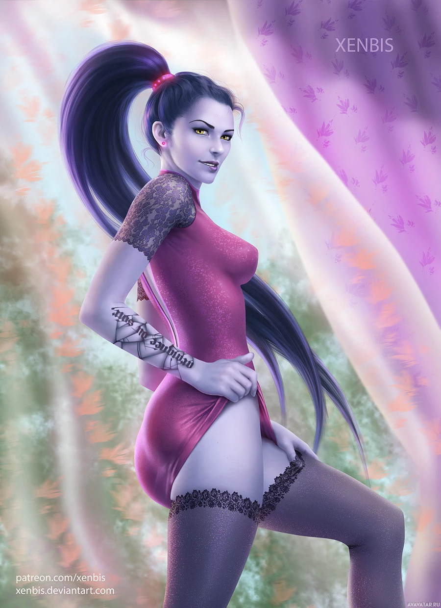 artistic design that suggests a luxurious or theatrical setting, possibly hinting at Widowmaker's role as an assassin within the game's universe.