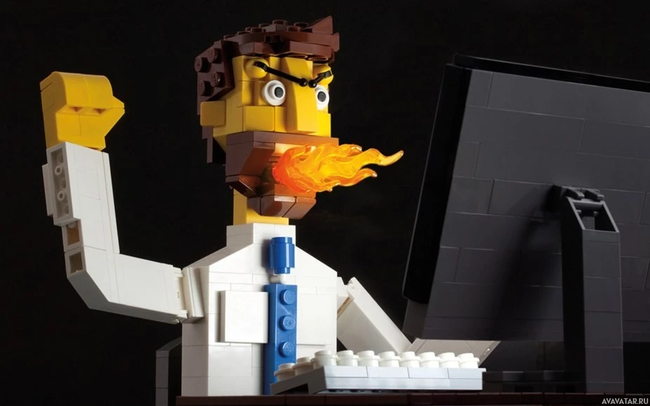 an indoor setting, potentially an office or workspace, indicated by the presence of what appears to be a computer screen and keyboard. The overall impression is that this figure embodies