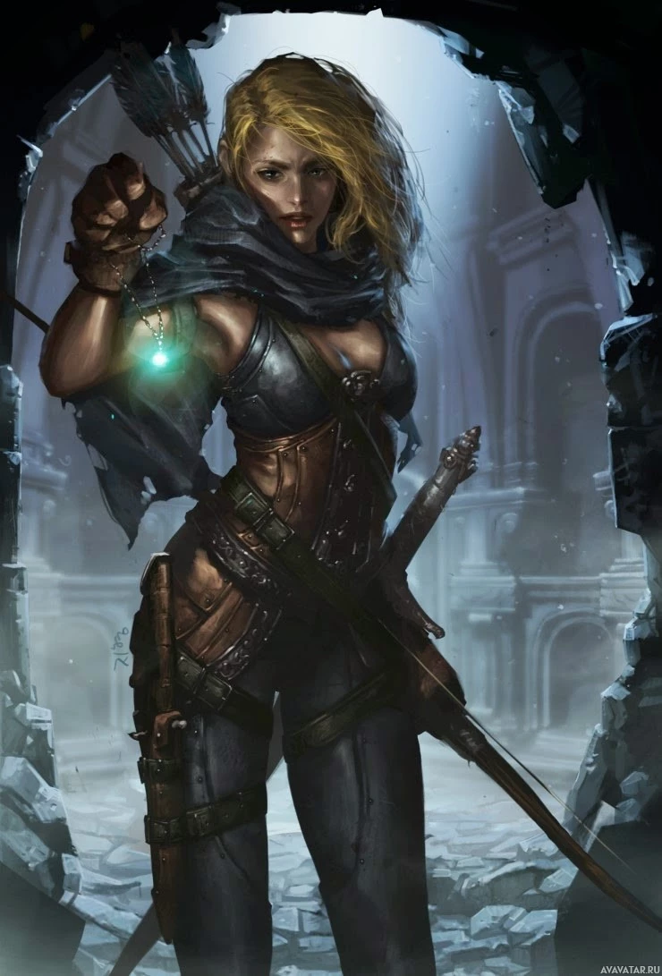 a female character who appears to be from a fantasy or role-playing game. She has