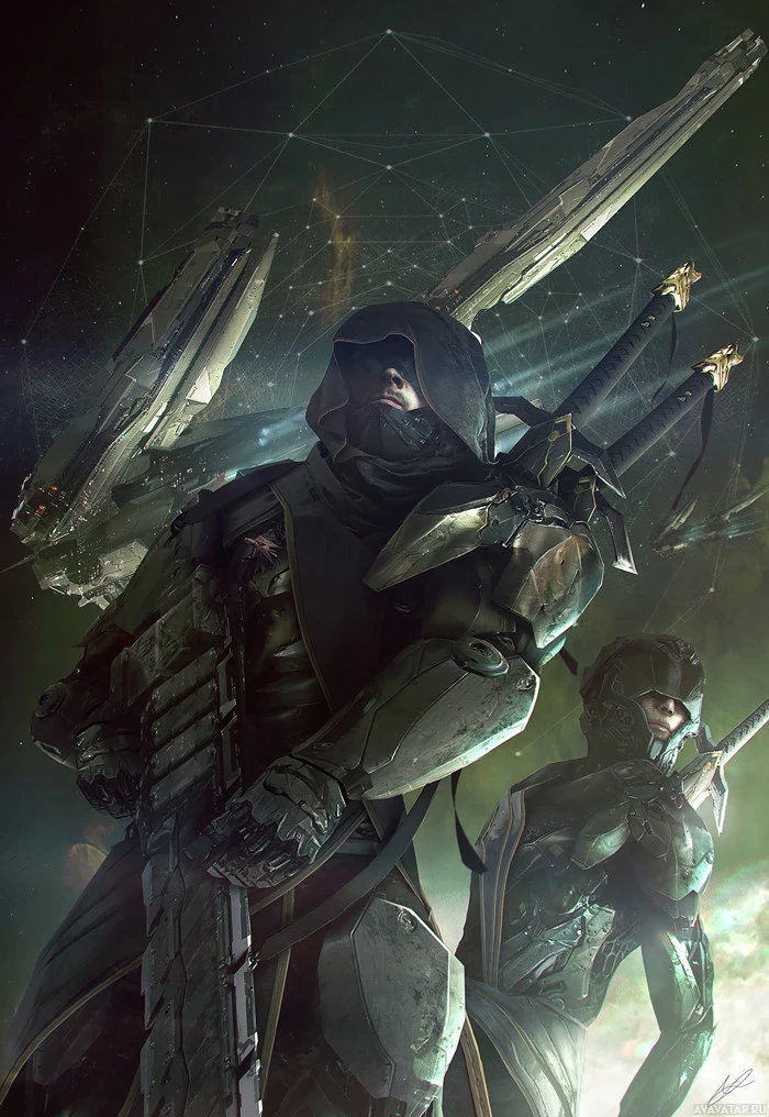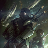 green color palette with digital or technological designs, which complements the futuristic theme of their armor and weapons.
